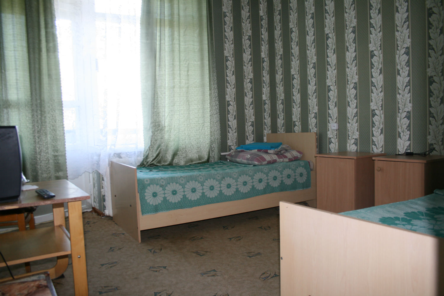 Площадь номера - 15 кв.м. 1 осн. место. Мебель: вешалка, зеркало, кровать односпальная, прикроватная тумбочка, стол, стул, шкаф. Оборудование. Санузел. Сервис: смена полотенец, смена постельного белья, уборка номера.