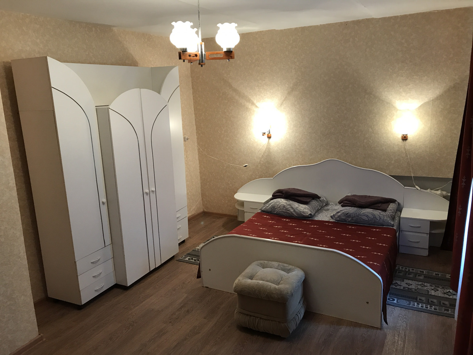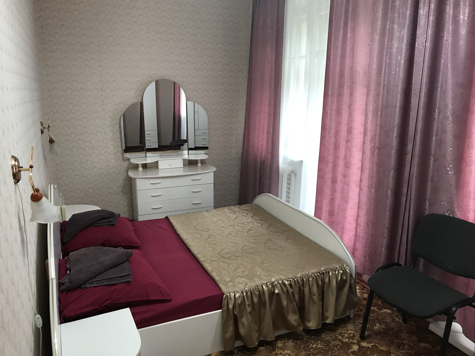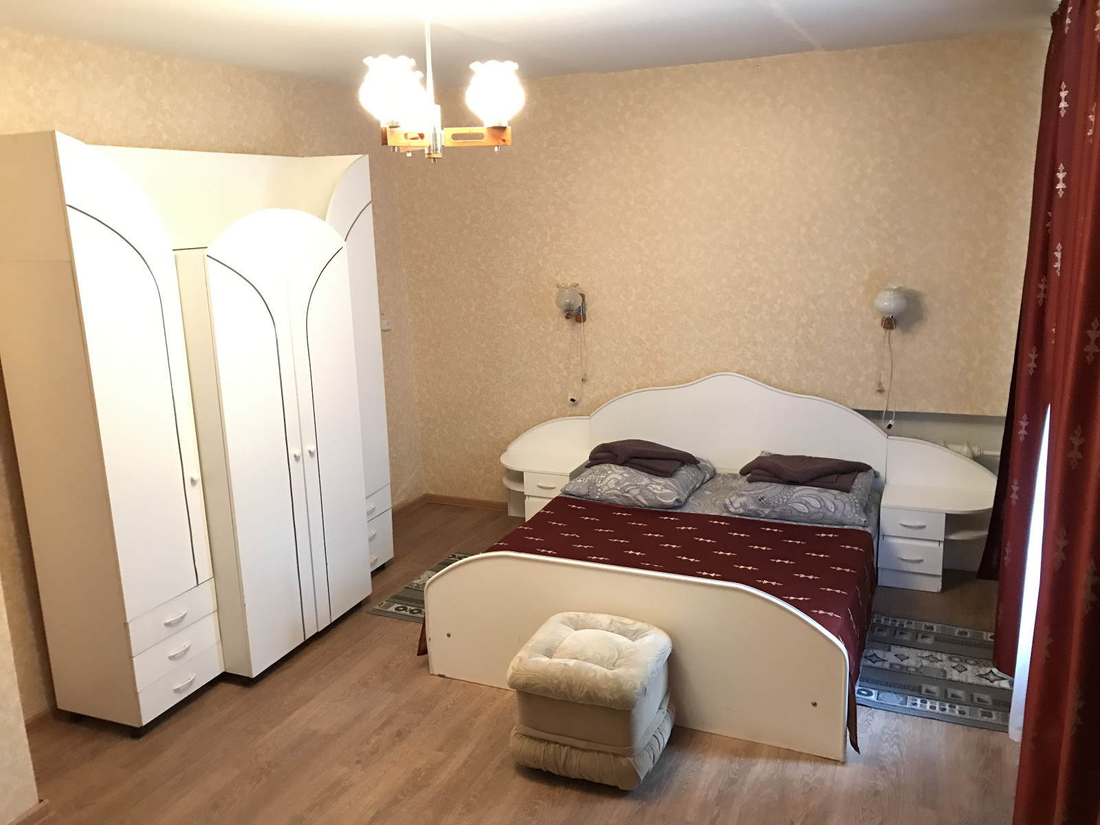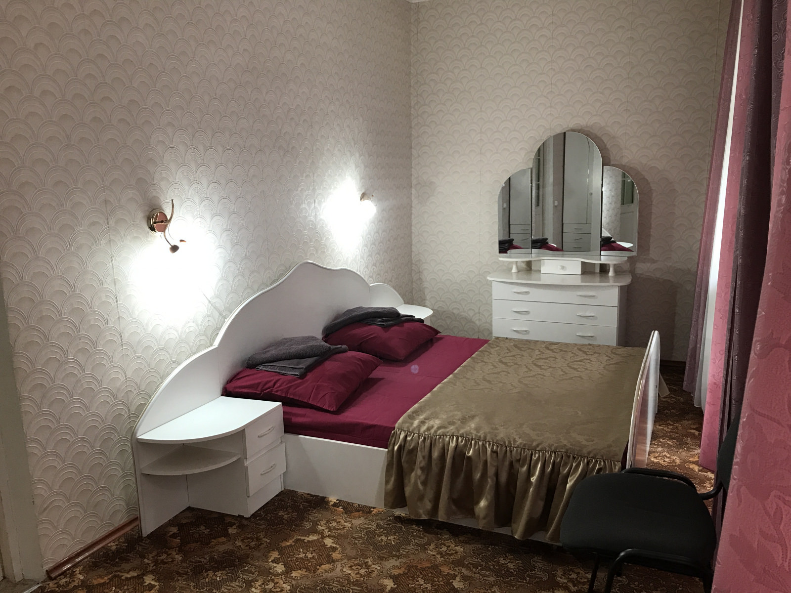 Площадь номера - 40 кв.м. 4 осн. места. 2 доп. места. Балкон. Мебель: вешалка, диван, зеркало, кресло (2), кровати односпальные, кровать двуспальная, прикроватные тумбочки, столик журнальный, шкаф. Оборудование: мини-холодильник, набор посуды, телевизор, электрочайник. Санузел. Сервис: смена полотенец, смена постельного белья, уборка номера.